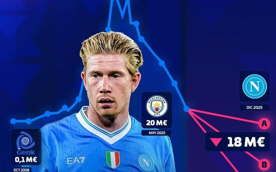 德转预热德布劳内身价更新:最低跌至1200万欧元